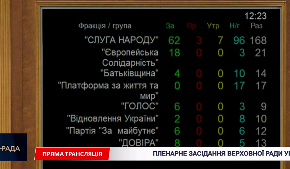 Голосування відбулося під час пленарного засідання Верховної Ради України 10 березня. "За" проголосували 112 депутатів, "проти" – 5, утримались – 7, не голосували – 154.