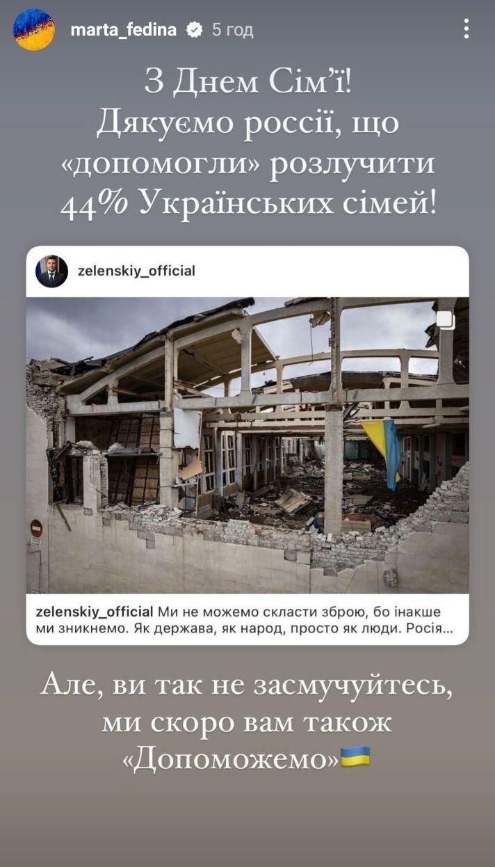 Але ви так не засмучуйтесь, ми скоро вам також "допоможемо", – написала Фєдіна у своєму Instagram.