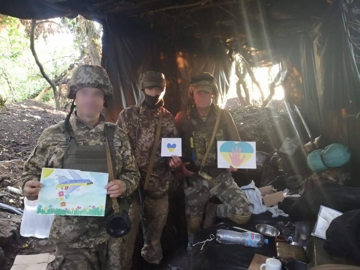 "Діти розуміють, що сьогодні доля нашої країни залежить від наших військових. Діти так само, як і всі ми, хочуть зробити свій внесок у перемогу. Думаю, хлопцям на передовій приємно отримати ці малюночки і листівки", – каже мама однієї з учениць Олена Володимирівна.