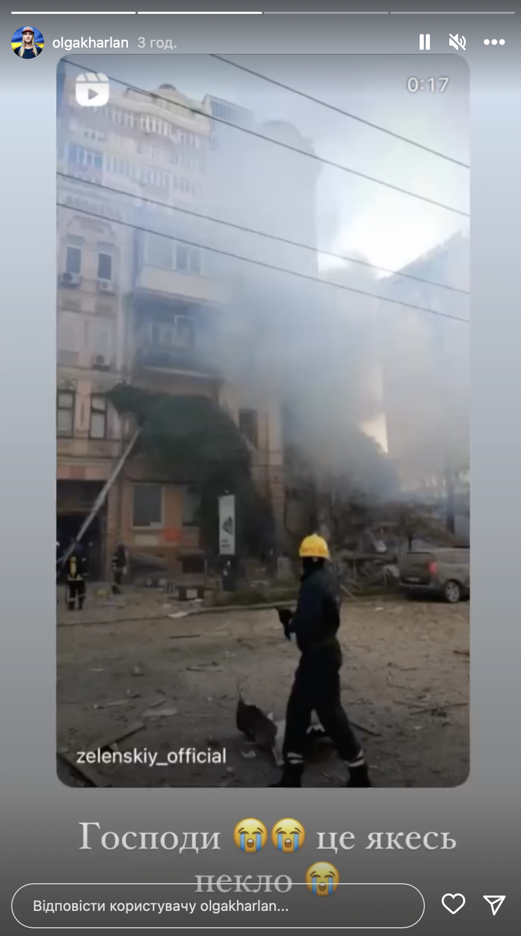 Вранці 17 жовтня росія атакувала Київ іранськими безпілотниками. Окупанти влучили в один об'єкт критичної інфраструктури та в багатоповерхівку. Харлан коротко відреагувала на черговий злочин терористів.