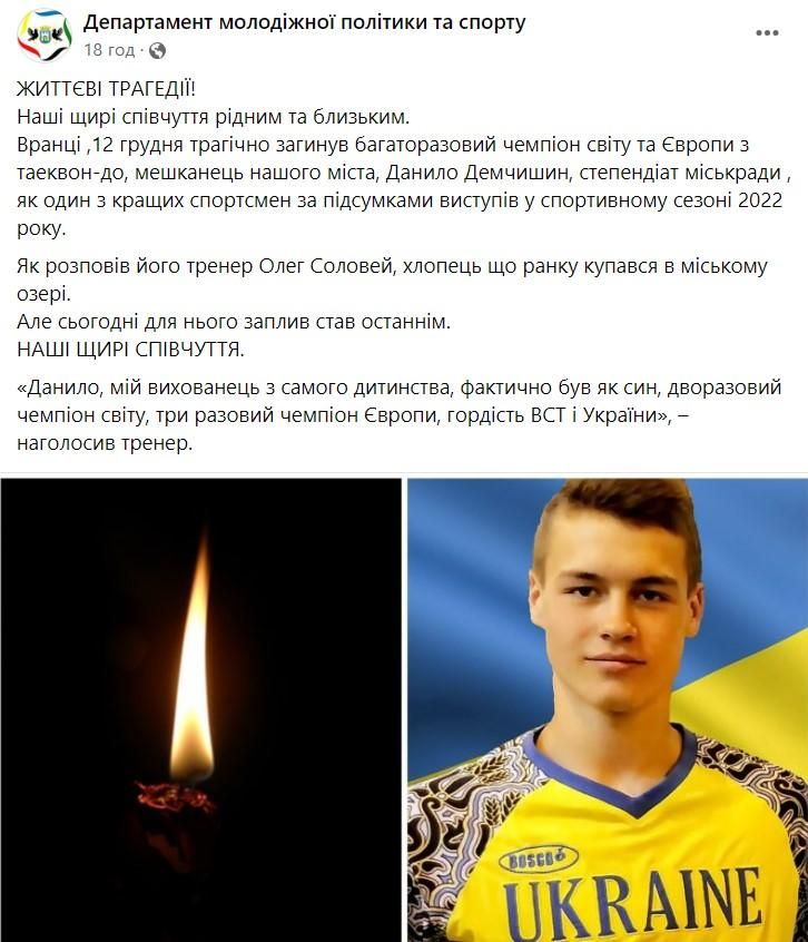 Трагічну новину одним із перших повідомив тренер хлопця – Олег Соловей. Данило Демчишин займався з ним з самого початку спортивної кар'єри.