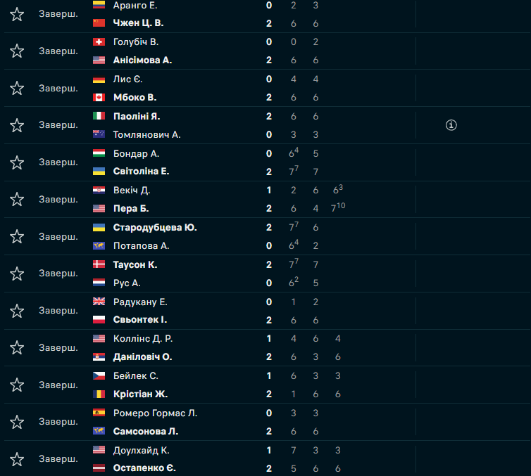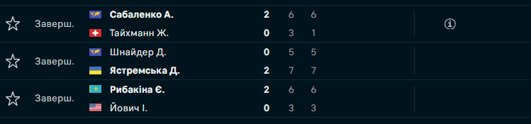Латвійська тенісистка з українським корінням Олена Остапенко у трьох сетах перемогла американку Каролін Доулхайд та пройшла далі. Перемогла й перша ракетка світу – "нейтральна" білоруска Аріна Соболенко.