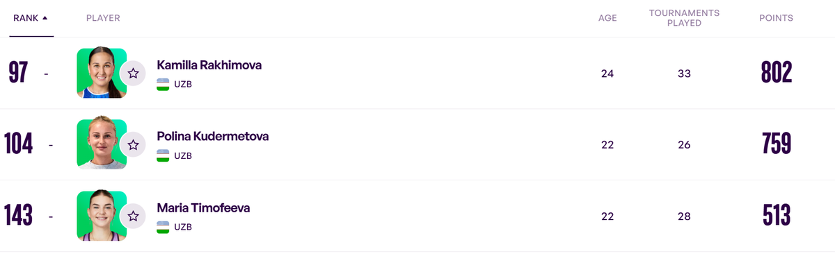 Раніше під новим прапором почали грати Марія Тимофєєва (143 ракетка світу) та Камілла Рахімова (97 ракетка світу). До речі, Камілла, Поліна і Марія стали трьома першими ракетками Узбекистану.