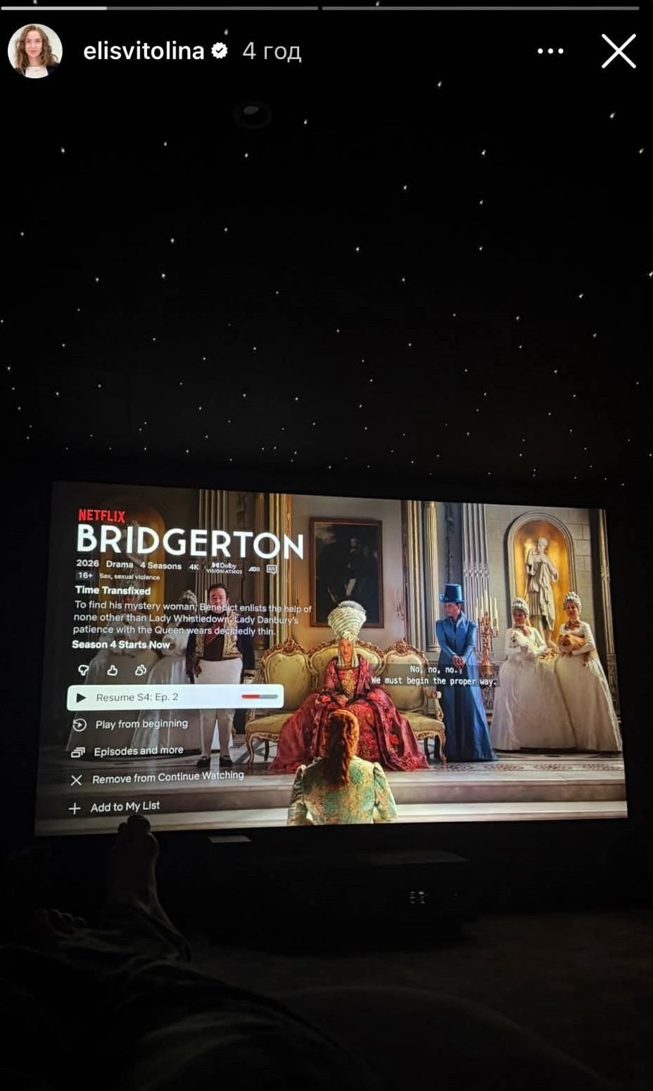 Тенісистка поділилася з підписниками в Instagram фото, як вона проводить вільний час. Еліна переглядає новий сезон популярного серіалу "Бріджертони".