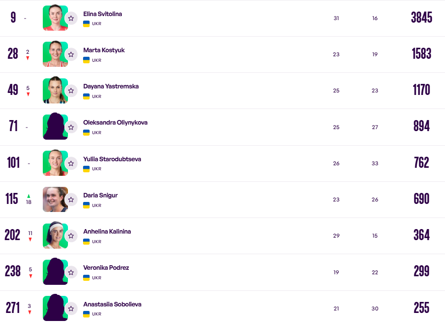 Щодо інших українок, то Марта Костюк тепер на 28-му місці (-2 позиції). Одразу 5 місць у рейтингу втратила Даяна Ястремська, яка стала 49-ю. Олександра Олійникова залишилася на 71-й позиції.
