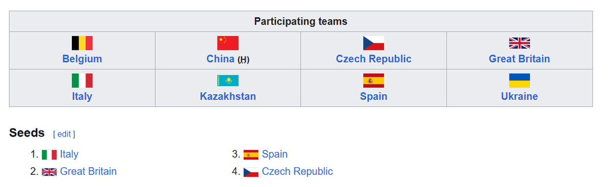 Разом з Україною у фіналі зіграють: Велика Британія, Італія, Бельгія, Чехія, Казахстан та Іспанія. Китай, як господар турніру, має автоматичний слот.